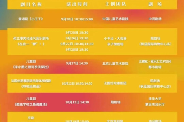 De septembre à octobre de cette année, elle propose une série d'activités thématiques «1+1+2», totalisant 30 événements. Parmi eux, 12 pièces commerciales de haute qualité offriront 18 représentations passionnantes. Elle poursuit l'engagement chaleureux tenu depuis dix ans : «centaines de spectacles bénéficiant à des milliers de familles».